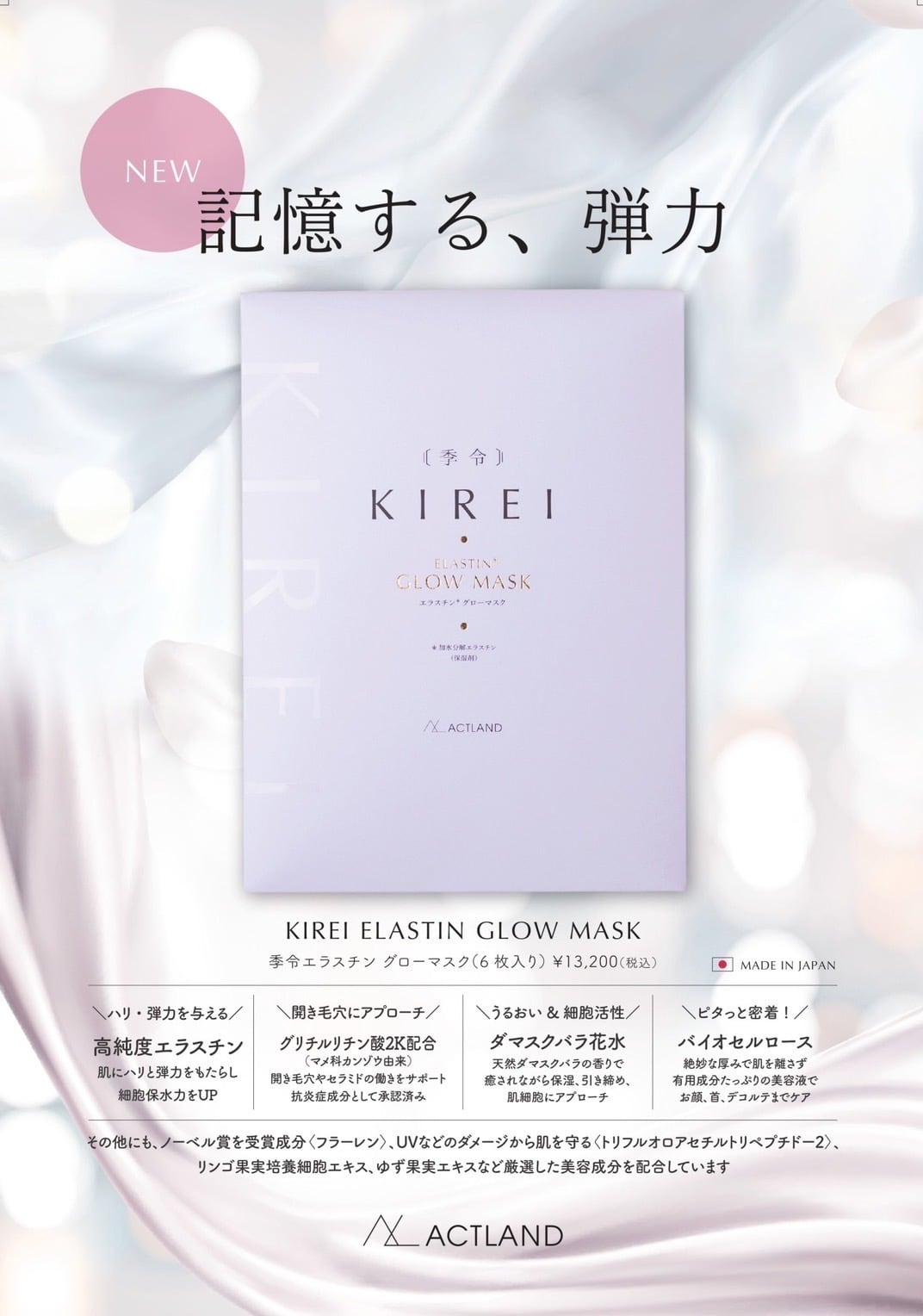 うるおいと透明感に満ちた”最高の肌状態を記憶する”バイオセルロース製のフェイスマスクです。